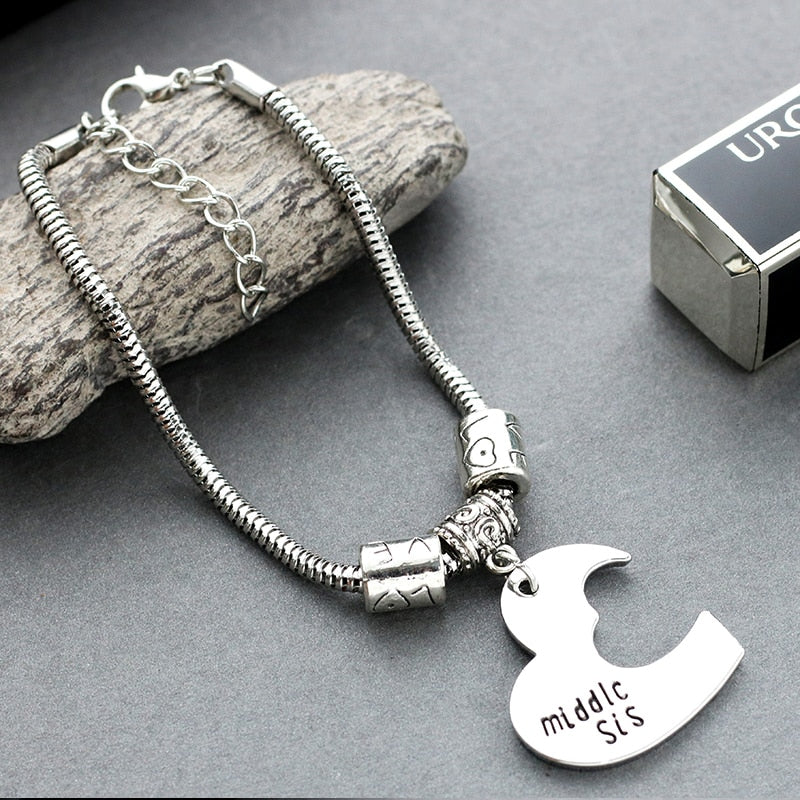 3 Pcs/Set Big Middle Little Sister Bracelet Necklace BFF Chain