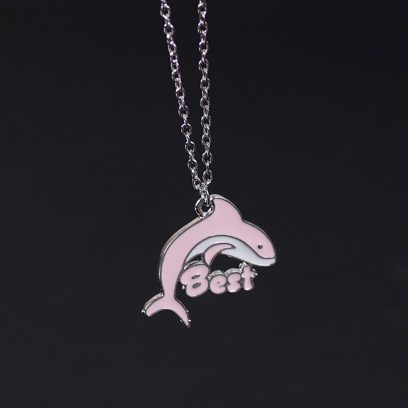 2pcs Cute Animal Little Dolphin Pendant Best Friend Necklace