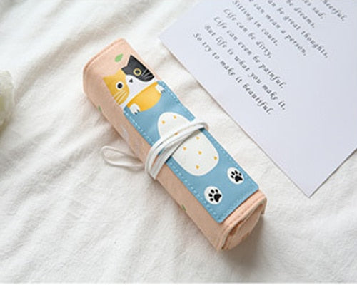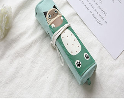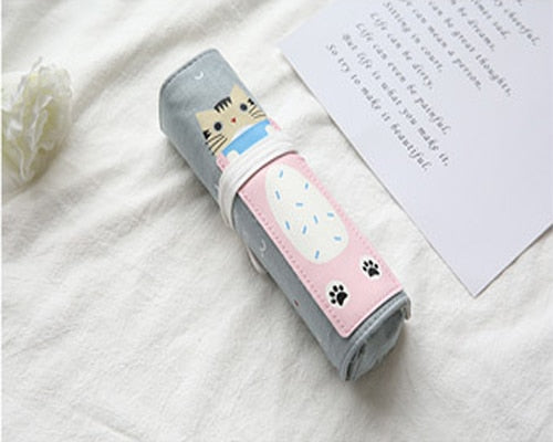Cute Creative Cute Cat Pencil Case Rolling Curtain Dual Purpose Multi-function Pen Bag Students Personality Stationery