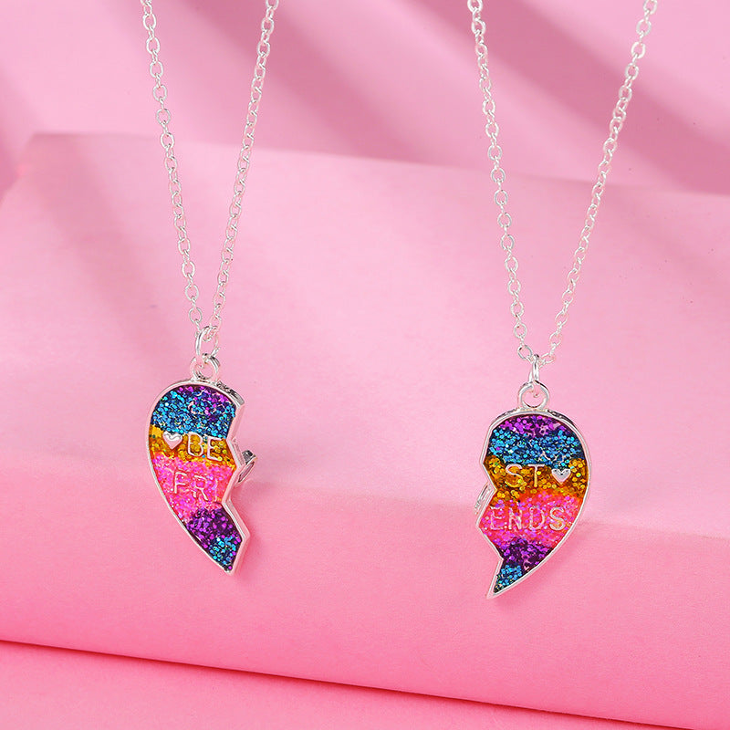 2Pcs/Set Gradient Color Heart-shaped Magnetic Stitching BFF Friendship Necklace